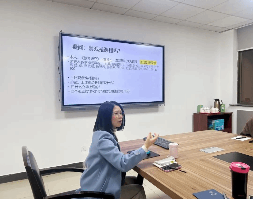 彭茜教授通过深入的理论阐释和对实践条件的细致分析,为在场的师生提供了宝贵的学术资源和思考框架。她指出,游戏是幼儿园课程的基本形态。接着,她进一步探讨了游戏课程化的理论价值及其实施中的实际困境,并针对这些问题提出了两个思考方向:一是什么样的游戏能够有效促进幼儿的学习?二是不同群体对学习的期望是否相同?她强调,这些问题的回答需要从历史、社会和文化的多重视角进行深入剖析。
