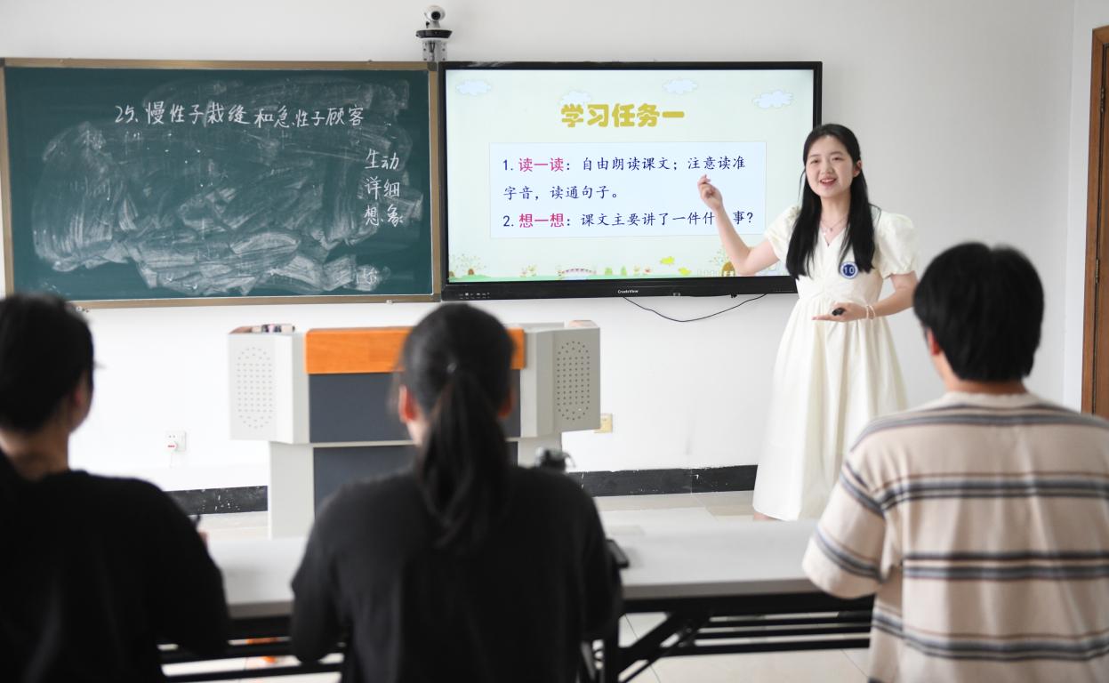 各竞赛室中,参赛选手们沉着冷静、各展风采,在讲台上阐述别出心裁的观点,在琴键上敲出悦耳动听的曲调,在台前演绎绘声绘色的故事。模拟上课中,选手们教态亲切自然,讲解思路清晰,板书整齐美观,大家的精彩表现得到了评委老师的认可与赞赏,充分展现了我院师范生扎实的教学基本功与作为未来卓越教师的综合素养。最终,刘寄傲等41位同学取得优异成绩,顺利晋级校级师范生教学技能竞赛。