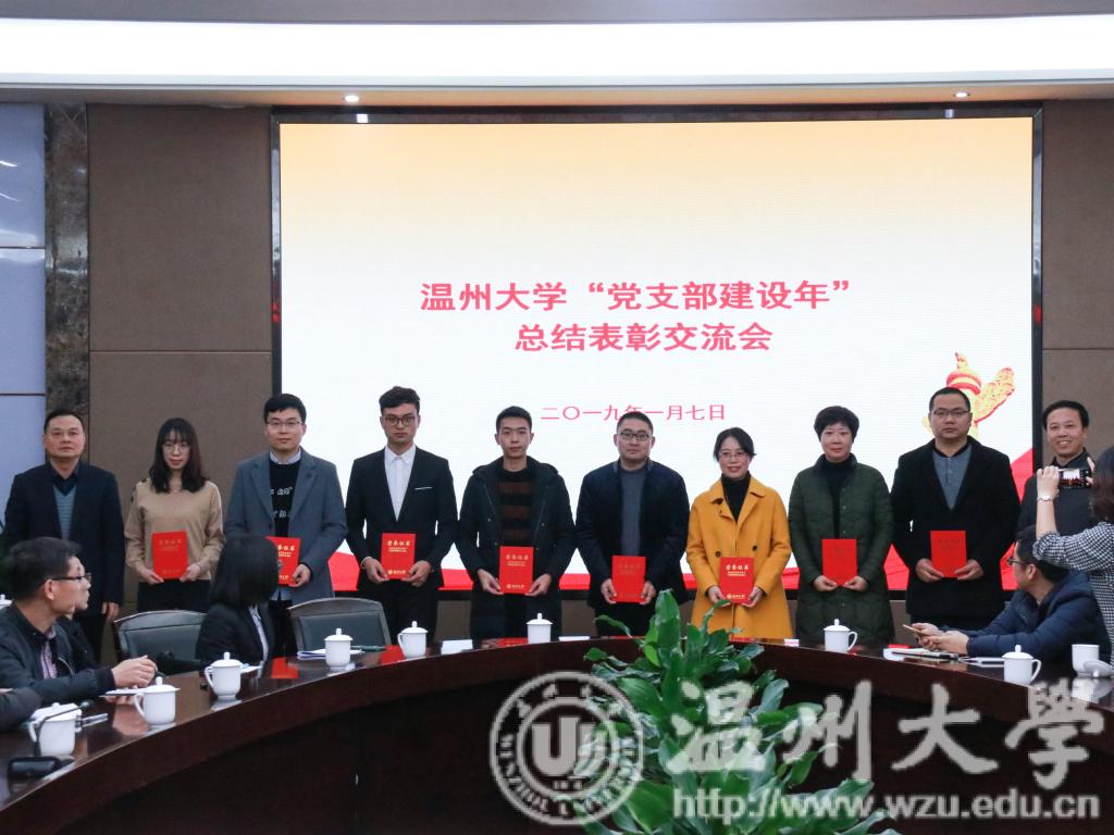 会议表彰了2018年p站视频 “党支部建设年”“十佳特色标兵党支部”、“十佳好支书”、2018年浙江省新时代“千名好支书”、“万名好党员”、浙江省高校“双百示范”工程首批党建示范群、首批党建特色品牌、入选全国高校“两学一做”支部风采展示的党支部、“全国党建工作样板支部”培育创建立项等五个类别的先进集体和个人。