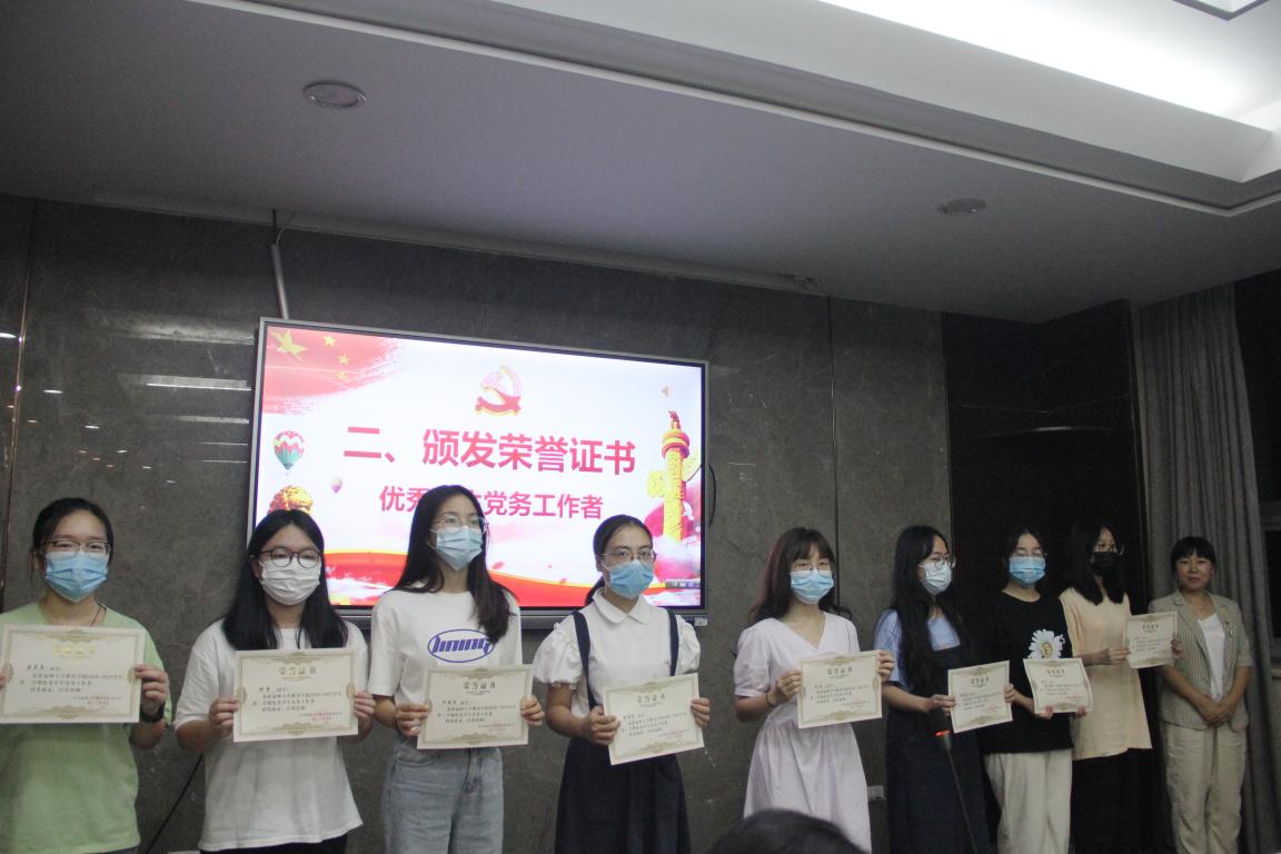 学院党委副书记章园园为上届党员服务中心成员、各学生党支部支委颁发聘书,对过去一年学生党务工作者的付出予以充分肯定。章园园书记、孟江龙老师和薛彬鹏老师一同为上学期优秀学生党务工作者、学生党务工作积极分子颁发荣誉证书。学生党员联系新生寝室活动继续开展,即日正式启动,章园园书记为七个党支部书记助理赠送活动记录册及相关材料,做好“传帮带”,架起“连心桥”,引导新生积极向党组织靠拢,为日后新生党建工作的开展打下坚实的基础。