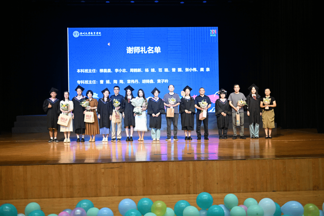 在大学学习生活中,老师们用知识的光芒照亮了学子们前行的道路。在谢师礼环节,毕业生代表们上台,向辛勤付出的老师们表达最诚挚的谢意。他们手中的鲜花,不仅是对老师们的感恩,更是对青春岁月中那份无私奉献的致敬。