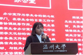 金洲州用自己在学生会的经历,为大家带来了8个关键词:选择、幸福、纯粹、热情、价值观、主人翁意识、坚持、凝聚力。他说:“选择做一名学生干部就是选择了一种生活方式。”繁忙的课业和团学的工作都需要做到兼顾,虽然时常会有力不从心的时刻,但正是在这紧凑的时间安排表里,学会了如何有效利用碎片化的时间。金洲洲的分享让团学成员相信优秀的人总会有办法解决所有的难题。没有固定时间学习就利用一切可利用的空余间隙学习,没有组织活动的经验就主动去请教学长学姐。他说:“在团学最大的优势是能够试错。所以不要害怕犯错。”最后他祝愿团学成员们在奋力拼杀后载誉而归,在离开时满心感激。