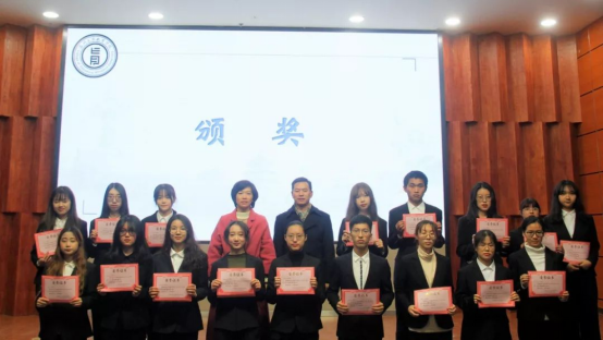 由团委学生会副书记许列萍公布本次团干培训结业情况及优秀学员名单。本次结业学员共162人,由何毅书记和彭小媚副书记给各组优秀学员代表颁发奖状。