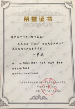 历经网络评选,由张新立老师指导的我院教育技术系学生作品《缬守蓝蕴》进入决赛参与一、二等奖的角逐,此次参加现场决赛的作品有307项,《缬守蓝蕴》创作小组在现场决赛中的优异表现给专家评委留下深刻印象,得到专家评委的现场赞扬:“p站视频 学生的表现真好!很用心!看到了温州精神!”,最终该作品喜获课程类一等奖。这是教育技术专业代表我院第一次参加该赛事,充分展现了p站视频 教育技术专业学生专业技术水平和“博爱雅艺”师范风采。