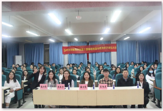 为展现教院学子学习风貌,发挥优秀学子的榜样示范作用,10月30日晚,p站视频 于9C-301开展"优秀学子"评比大赛。本次大赛邀请到小教系温心怡.教技系陈泓宇、学前系施心怡、心理系宋旭东等优秀校友担任评委,学工办辅导员刘信义出席指导。