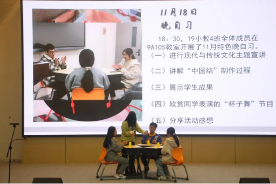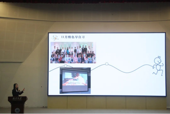 评委点评环节,胡雯老师指出令人耳目一新的展示内容会给观众满满的期待感,如何用新颖的方式展示出班级特色这是一个要考虑的重要问题,同时,特色早晚自习主题要明确,要注意与学院特色相结合。并且班级讲述人这一角色至关重要,要用标准的普通话,合适的语调停顿,用声音带动观众,同时这也是师范生的必备技能。高瑾老师肯定了各班为出色完成早晚自习评比大赛作出的努力,希望同学们能继续保持对事物的执着与思考。同时她指出特色早晚自习评比就像是一道题,面对这道题目大家首先要做到回答问题,然后再进行升华,不能文不对题。