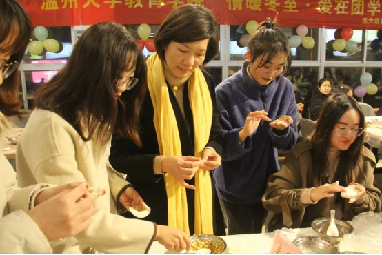 十月一,冬至到,家家户户吃水饺”,团委、学生会的成员们精心准备了包饺子所需食材,大家坐在一起,其乐融融包饺子。