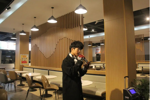 令人期待的饺子游戏也随之登场。本轮游戏以7个人为单位,首先先给自己想好一个关于水果的代号,然后由A先喊出:“各位好汉请抱拳!”,另外的6个人就一起双手抱拳,并大喊一声“哈!”,由一个人指定下一个人谁爱吃饺子,传递谁爱吃饺子,说错或超时都要被淘汰,最后决出获胜的人。这个游戏也给同学们带来一次活跃动感、温馨愉悦的现场体验。