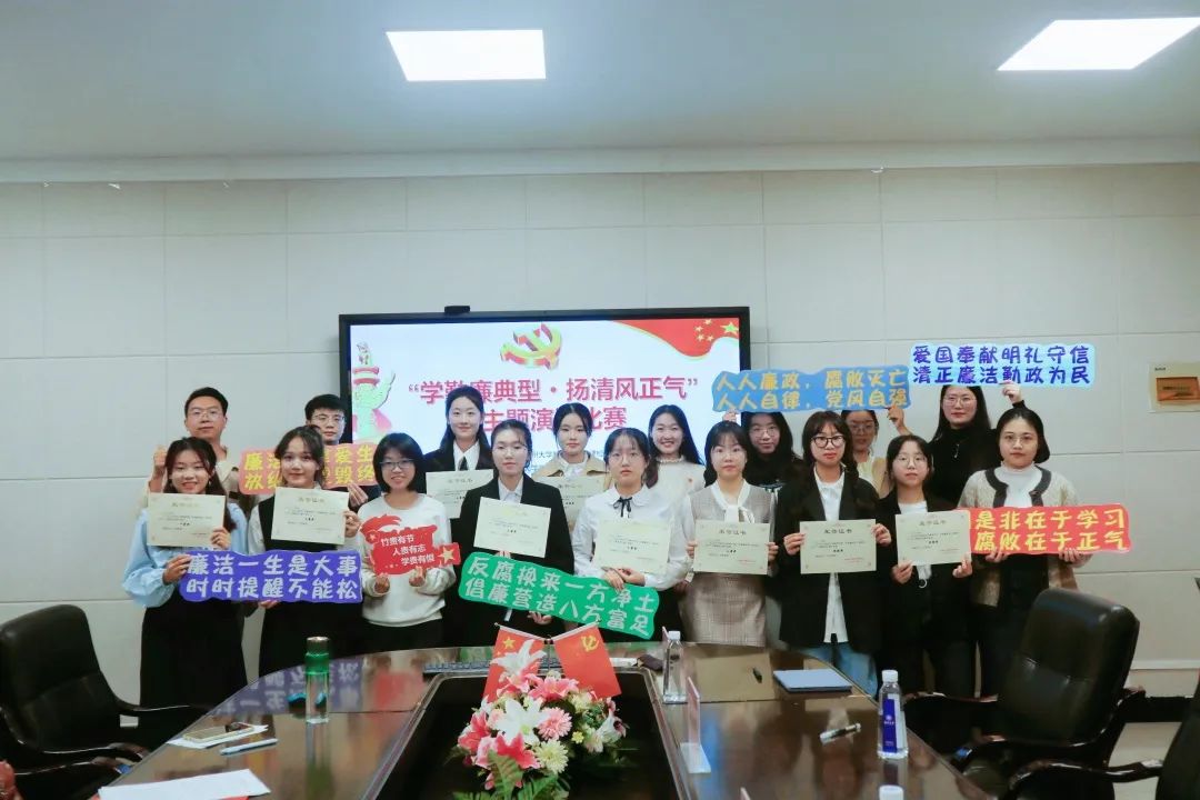 为深入学习贯彻党的二十大精神,传承红色基因,赓续共产党人精神血脉,扎实推进新时代学校廉洁文化建设,引领青年大学生塑造清正廉洁的品格,走好成长成才之路,营造风清气正的校园氛围,我院于11月18日晚上在9A410举行了“学勤廉典型·扬清风正气”主题演讲比赛。出席本次比赛的有学院学工办辅导员孟江龙、学院团委副书记宁梦婷、学院研究生会执行主席高美娜、学院学生会执行主席徐依晴、学院党员服务中心主任楼菡羽和去年p站视频 “学勤廉典型·扬清风正气”主题演讲比赛获奖者周忆。