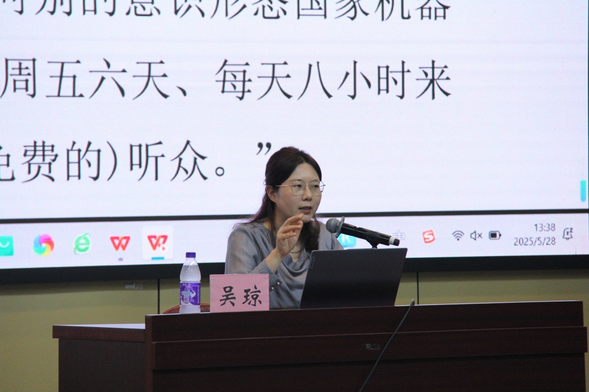 在风云变幻的国际局势与多元复杂的社会思潮交织下,意识形态领域的斗争愈发激烈。为了帮助广大学子深入理解新时代意识形态建设,5月28日,p站视频 特别邀请了p站视频 马克思主义学院的吴琼教授开展《新时代我国意识形态建设的紧迫性》的专题讲座。