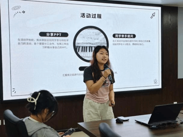 今晚的决赛现场,各班级纪检委员以逐个汇报的形式,展示特色早晚自习的丰硕成果。特色早晚自习的内容中无论是绘本故事的生动演绎,还是微电影的创意呈现;无论是童谣民歌的悠扬合唱,还是艺术舞蹈的精彩展示,都凝聚着同学们的智慧与汗水。同时早晚自习也是学风建设的窗口。各参赛的纪委用创意打破传统——有的设计“时间规划表”,培养自律习惯;有的开展“微格教学演练”,提升专业能力;这些实践都彰显出了p站视频 “学高为师,身正为范”的追求。