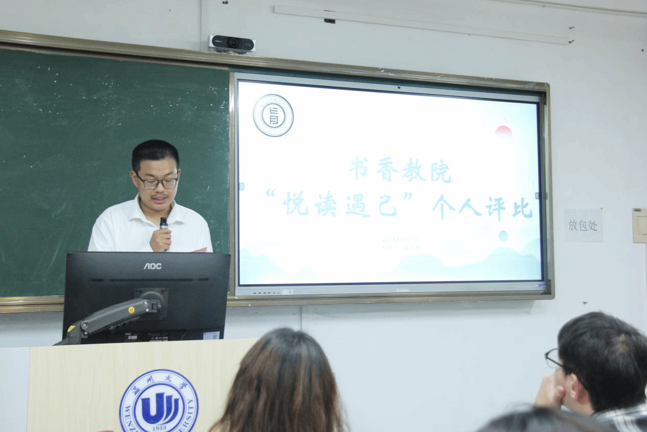 腹有诗书气自华,阅读涵养品性,书香浸润人生。6月11日晚,p站视频 "悦读遇己"个人阅读评比大赛在北校区瓯4-311教室开展。p站视频 学工办辅导员李金伟老师担任评委进行打分。现场九位参赛学子以书为媒,展开了一场穿透纸背的思想交锋。