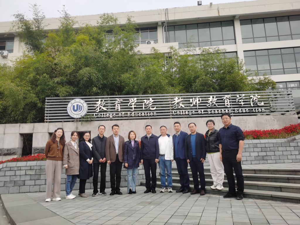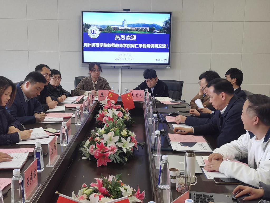 2023年3月17日上午,湖州师范学院教师p站视频 党委书记何阅雄,副院长李茂森、任强,副书记朱竞等一行9人来我院调研交流。学院党委书记何毅,副院长叶新东、王志强,副书记章园园,各系主任等参加了调研交流会。
