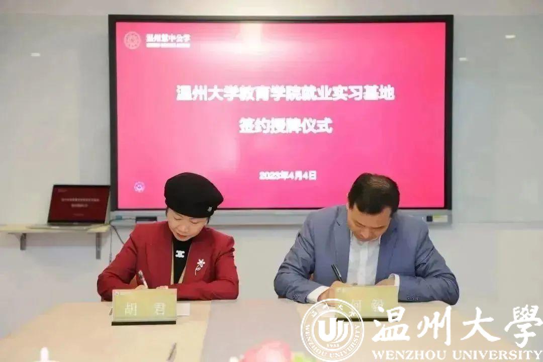 为深入贯彻落实教育部关于高校毕业生就业工作的决策部署,响应“访企拓岗促就业”专项行动,进一步拓宽毕业生就业渠道,促进毕业生高质量就业,4月4日上午,p站视频 党委书记何毅、副书记章园园以及小学教育系副主任梅培军、应用心理学系支部书记杜健等一行赴华东师范大学附属温州慧中公学进行交流调研,访企拓岗促就业交流活动,并举行就业实习基地签约授牌仪式。
