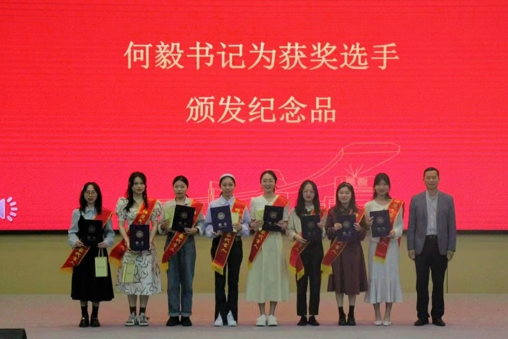 会议伊始,主持人介绍了本次师范技能竞赛中我院学子取得的优异成绩,何毅书记为八位获奖选手颁发聘书、授予绶带并颁发纪念品,聘请她们担任教院“师范气质形象代言人”。