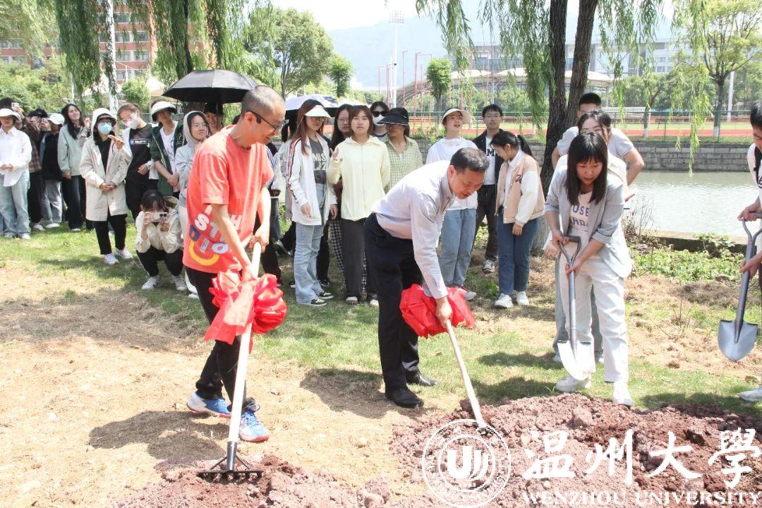 在现场,我院金建钰博士向同学们传授他多年种植的经验,并介绍了如何开垦土地、使用农具。“后续我们将围绕‘劳动教育’展开实践教学的设计,让更多老师同学们在这里耕作土地,种植作物,期待来年硕果丰收。”随后,领导老师们挥下第一锄,同学们的劳动实践活动正式开始。
