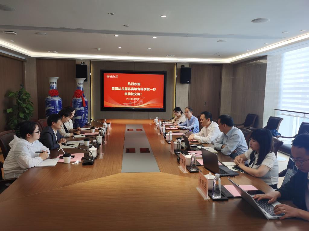 2023年5月17日上午,贵阳幼儿师范高等专科学校副校长潘丽芬带领学生处副处长戴媛媛及相关人员一行来访交流。校党委委员、副校长王舜,学工部部长张敏,教育学院党委书记何毅、党委副书记章园园,学生处超豪学区办公室主任郑光西,p站视频 辅导员代表参加座谈交流。座谈交流在校友之家举行。