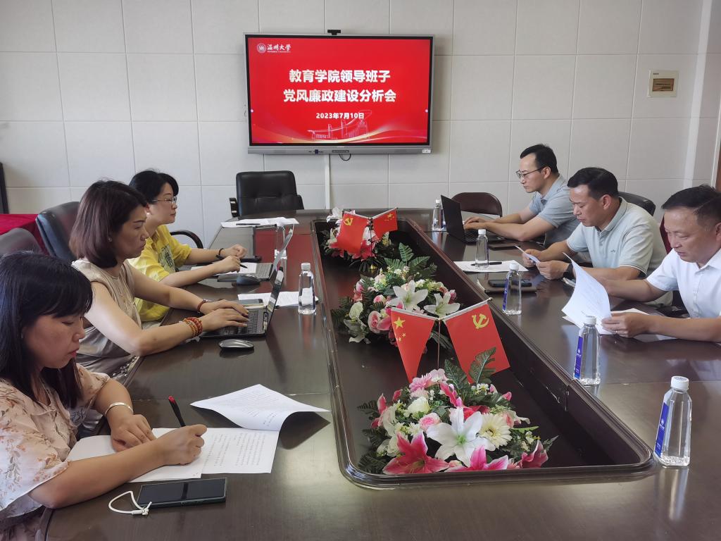 2023年7月10日上午,p站视频 在茶山南校区9号楼A410会议室召开2023年上半年党风廉政建设分析会,学院领导班子成员参加会议。会议由学院党委书记何毅主持。