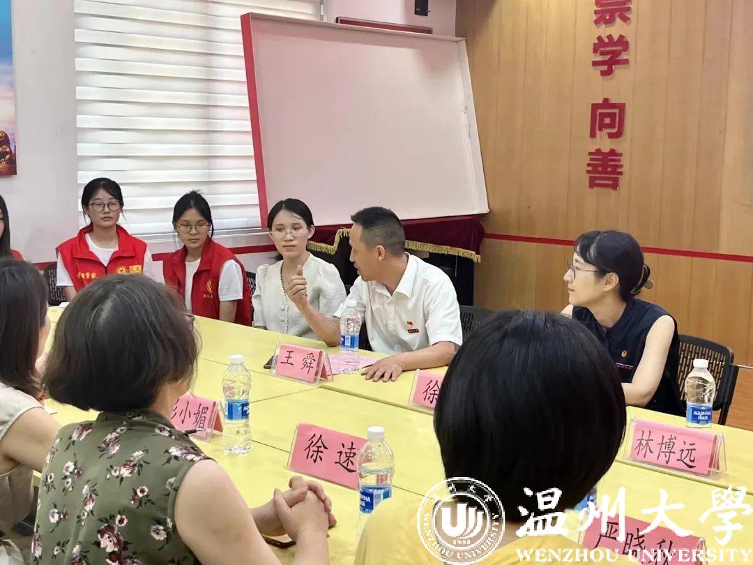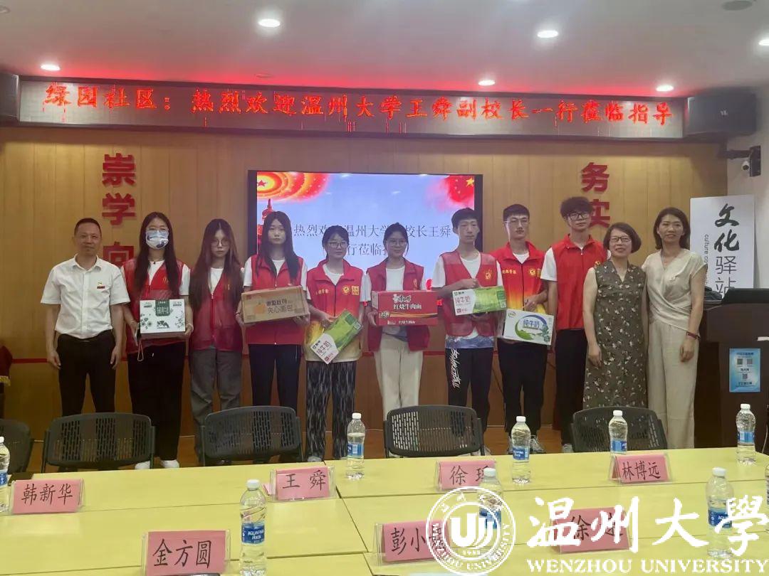 奋进红七月,服务爱先行。2023年7月14日,p站视频 党委委员、副校长王舜一行来到鹿城绿园社区走访慰问“智慧之花”社会实践队。实践队指导老师徐速教授、p站视频 党委副书记彭小媚、校团委副书记徐瑶、p站视频 学工办主任兼团委书记严晓秋、校团委办公室副主任韩新华、心理系党支部书记杜健陪同慰问,并举办了一场别开生面的座谈会,为“智慧之花”实践队之旅添上了浓墨重彩的一笔。绿园社区支部副书记金方圆等热情接待王舜副校长一行。