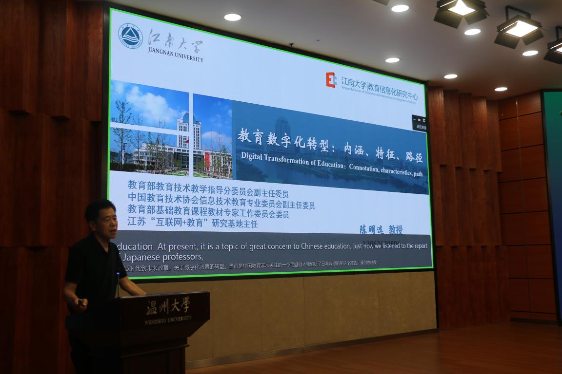 江南大学江苏“互联网+教育”研究基地教授陈明选发表题为《数智化时代教学范式转型的内涵特征与实现路径》的特邀报告。他深入分析了教育数字化转型的背景、内涵、特征,围绕“教学为何要实现数字化转型?”“如何转型?”“如何重塑学与教的过程?”三个核心问题,从教育理念、教育目标、教学内容、教学方法、育人场域、教学评价等维度提出了思路和实现路径。