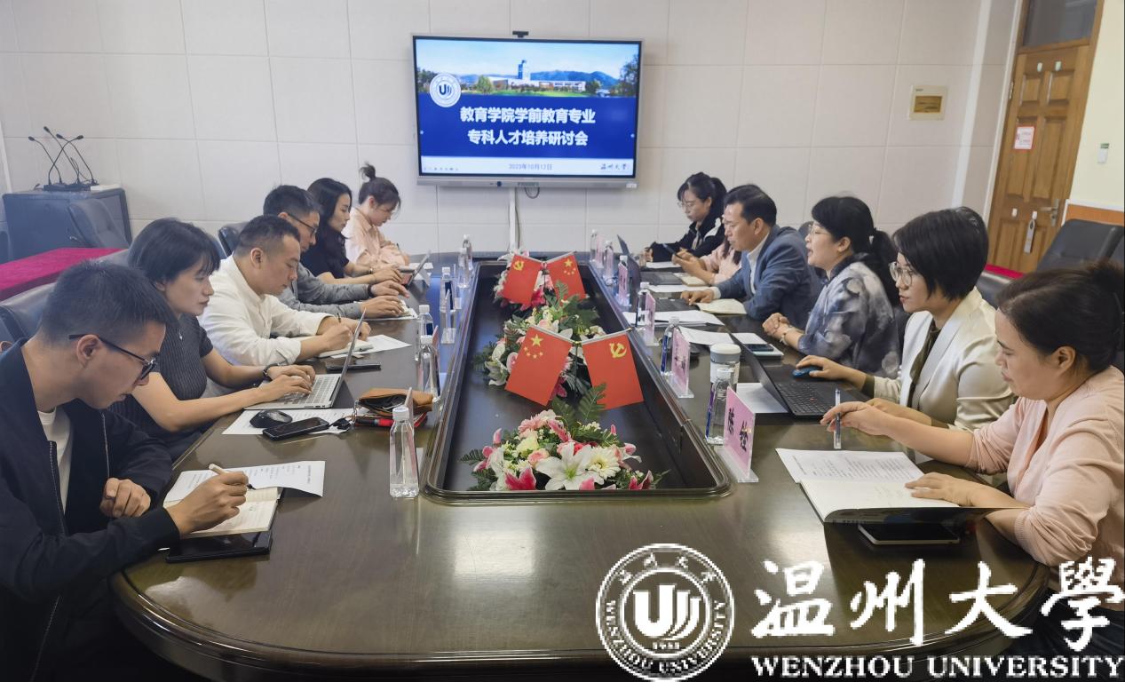 2023年10月12日上午,p站视频 学前教育专业专科人才培养研讨会在p站视频 410会议室召开。本次会议围绕“协同育人 合作共赢”主题,研讨学前专科人才培养新路径。p站视频 党委书记何毅、副院长林琛琛、副书记章园园、学前系主任李娟、副主任陈铿、教学科副科长陈楠、温州市中等幼儿师范学校校长蒋高烈、副校长徐康康、办公室主任戴若琪、实训处主任朱芬、教务处副主任谷晓辉、实训处干事陈章悦等参加本次研讨会。林琛琛主持会议。