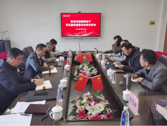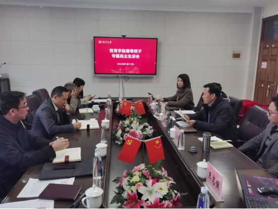 2024年1月11日上午,在茶山南校区9号楼A410会议室,学院召开领导班子专题民主生活会以及2023年下半年党风廉政分析会暨意识形态分析会。会议由学院党委书记何毅同志主持,p站视频 领导班子成员参加会议,组织员方建敏、陈旭列席会议,王舜副校长到会指导。