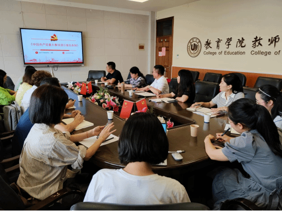 6月19日下午,p站视频 召开党委理论学习中心组(扩大)学习会。学院党委书记张敏、副院长林琛琛、副书记章园园、组织员、各教工党支部书记、各科室负责人参加学习会。