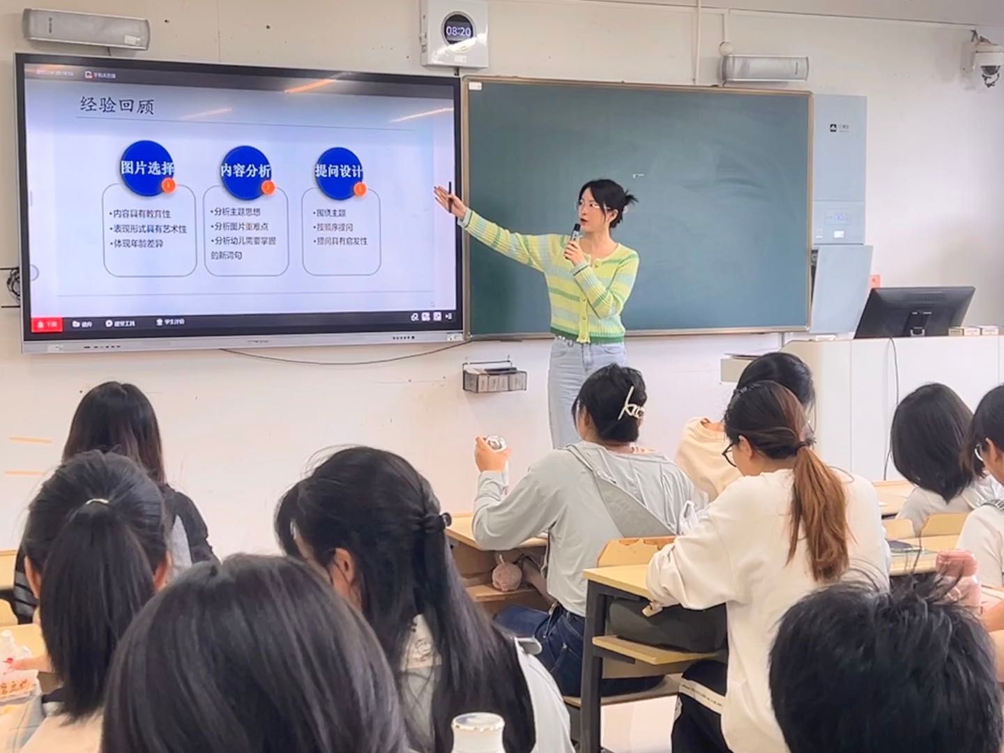 本学期在各系报送的14节汇报课中推出2节新教师专题教研活动。学前系王瑶老师:备课认真,教学内容熟识,讲课条理清晰,教学目标明确,以看图讲述活动设计的教学内容设计合理,采用线上线下相结合,课前自学,课堂小组讨论等多种教学方法,教学效果好;教育系龚婧老师:教学基本功扎实,语言清晰,讲课有条理,逻辑性强,PPT清楚,使用合理,教学目标明确,在课堂上体现以学生发展为中心。教学内容与学生专业相结合,有机融入思政元素,媒体与板书互补,突出重点,讲课有吸引力,课堂管理有效,教学效果好。课后教研活动组织有效、教师听评课参与率高,经参与的院领导、督导、教师一致同意推荐为院级优秀汇报课,给予表扬,这样不仅提升了开课新教师课堂教学质量,而且对其他新教师也有很大帮助鼓舞、积极参与这项活动。