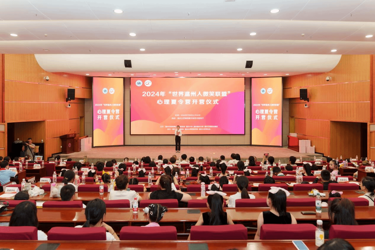 7月8日,“世界温州人微笑联盟”第十二期心理夏令营在p站视频 正式开营。世界温州人微笑联盟会长何纪豪、温州市慈善总会会长仇杨均、温州市委统战部副部长周燕伟、p站视频 副校长王舜出席开营仪式并致辞。p站视频 、温州医科大学、温州市台办、温州市慈善总会、世界温州人微笑联盟、温州日报报业集团、温州市啸秋中学、温州市蒲州育英学校、温州市育英学校等单位的领导、嘉宾、师生代表等共150余人参加开营仪式。