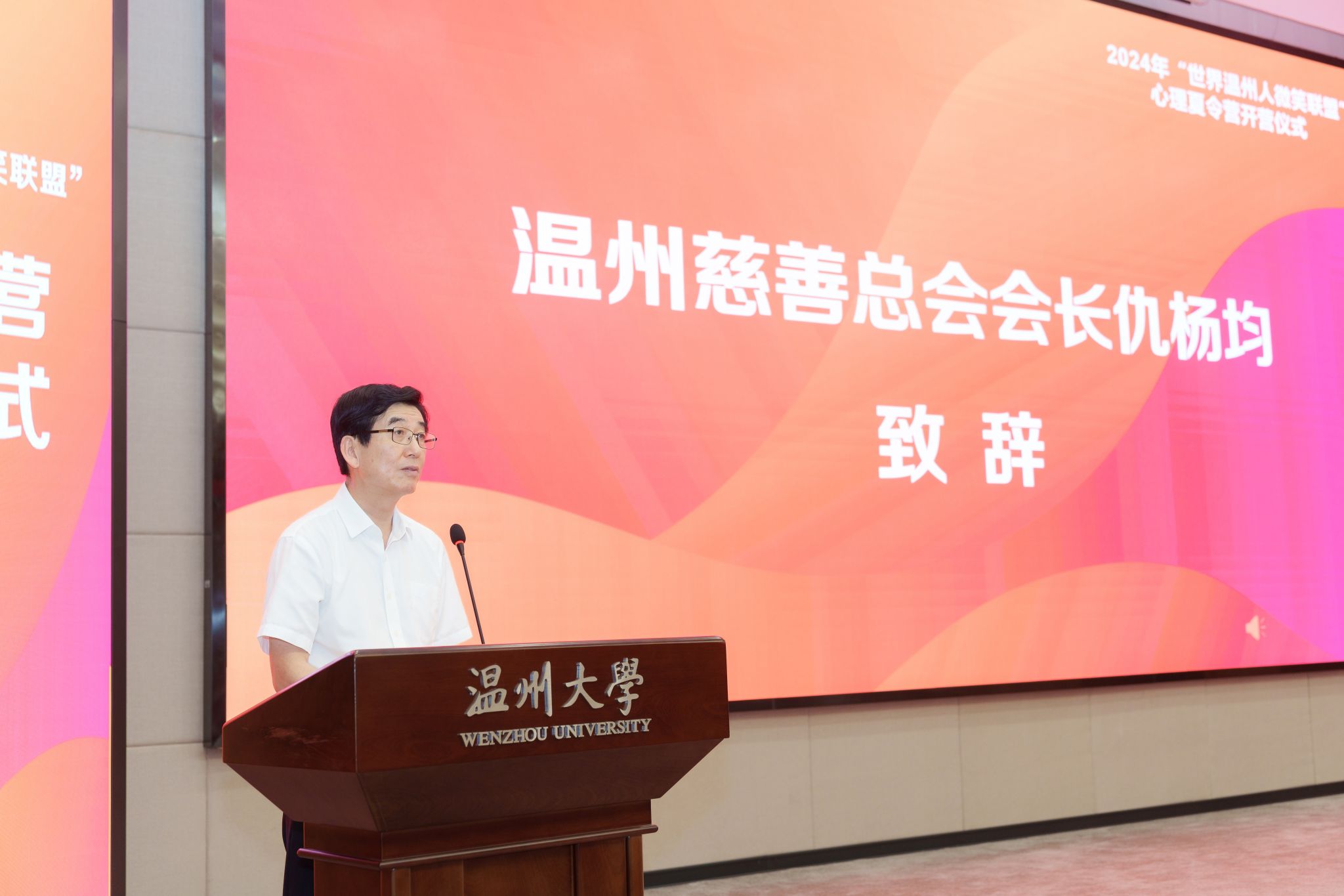 仪式上,温州慈善总会会长仇杨均致辞。他感谢微笑联盟的大爱精神和无私奉献,呼吁社会上能有更多的爱心组织、爱心企业、爱心人士加入到“微笑工程”这一公益活动中来,携手同行,用爱和关怀点亮孩子们的未来,让微笑成为孩子们最美的名片。