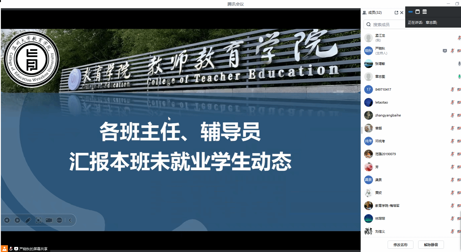 学工办主任严晓秋对2024届毕业生基本情况进行了汇报,就今年就业形势、就业途径及工作方式方法等进行了说明。2024届毕业班班主任分别就毕业生就业跟进工作情况进行了汇报分享交流。