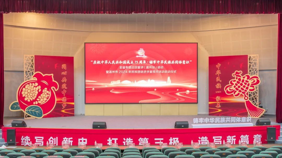 瓯越同心助强城,中华民族一家亲。9月11日,“庆祝中华人民共和国成立75周年·铸牢中华民族共同体意识”2024年度全省专题巡回宣讲活动(温州站)暨温州市2024年民族团结进步宣传月活动启动仪式在我校举行。