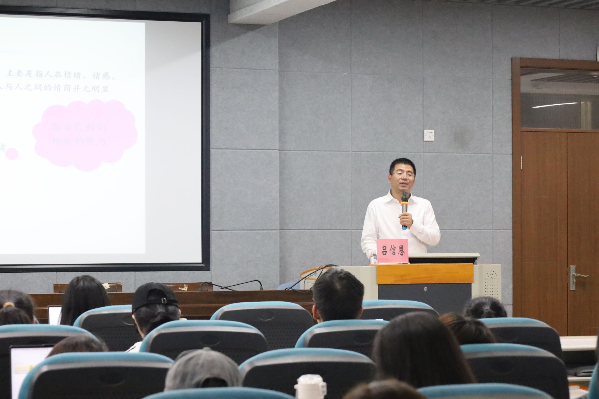 吕信恩还为学生干部作为《高校学生干部素养提升》专题讲座。他结合自身学生工作经历,从情商培养、人际关系管理与压力调适等方面深入探讨了学生干部所需的核心素养。他强调,情商对于学生干部的成长至关重要,尤其体现在与朋辈同学沟通、协调和应对多重压力的能力上。他鼓励学生干部要不断提升自我,勇于担当,积极发挥引领作用,以扎实行动书写无悔青春。