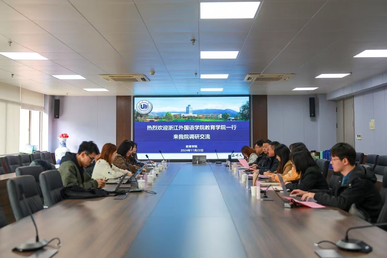 11月22日上午,浙江外国语学院p站视频 党委副书记李娟、学生工作办公室主任陶诚一行七人来我院调研交流。学院党委书记、副院长张敏,党委副书记章园园及学工办辅导员参加座谈交流。座谈会在瓯8-204会议室举行,章园园副书记主持。
