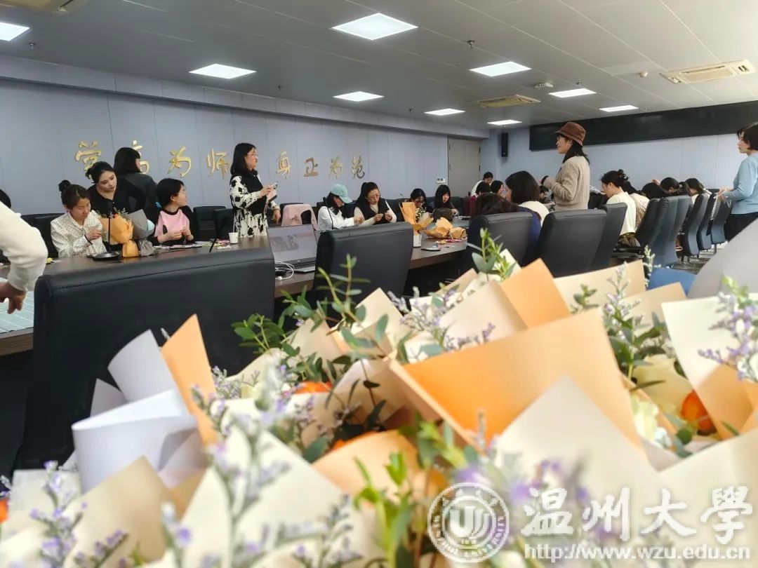 春风拂栏露华浓,明媚的春熙踏着三八妇女节的脚步,悄然攀上栏杆,洒满室内。为庆祝三八妇女节的到来,丰富教院女教师们的业余生活,p站视频 工会携手妇联,于3月12日下午两点在北校八号楼204室举办了一场别开生面的妇女节活动。活动分为三个环节:鲜花赠佳人、美照打卡与巧手串珠活动。