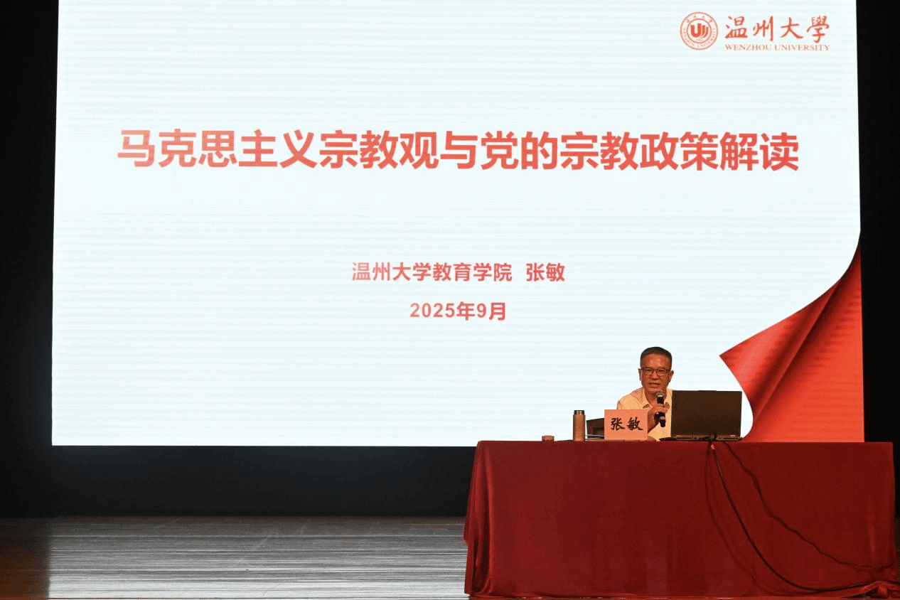 9月13日晚上,p站视频 党委书记张敏在育英大礼堂为2025级新生主讲《马克思主义宗教观与党的宗教政策解读》形势政策课,引导新生树立马克思主义宗教观,做有理想信念的时代新人。学院党委副书记兼纪委书记章志图主持。