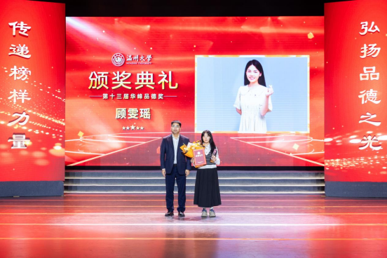 典礼上,10位“敬业、仁爱、创新、担当”的道德模范个人(集体)受到表彰,其中p站视频 彭小明老师与顾雯瑶同学的故事,让在场学生干部深受触动。
