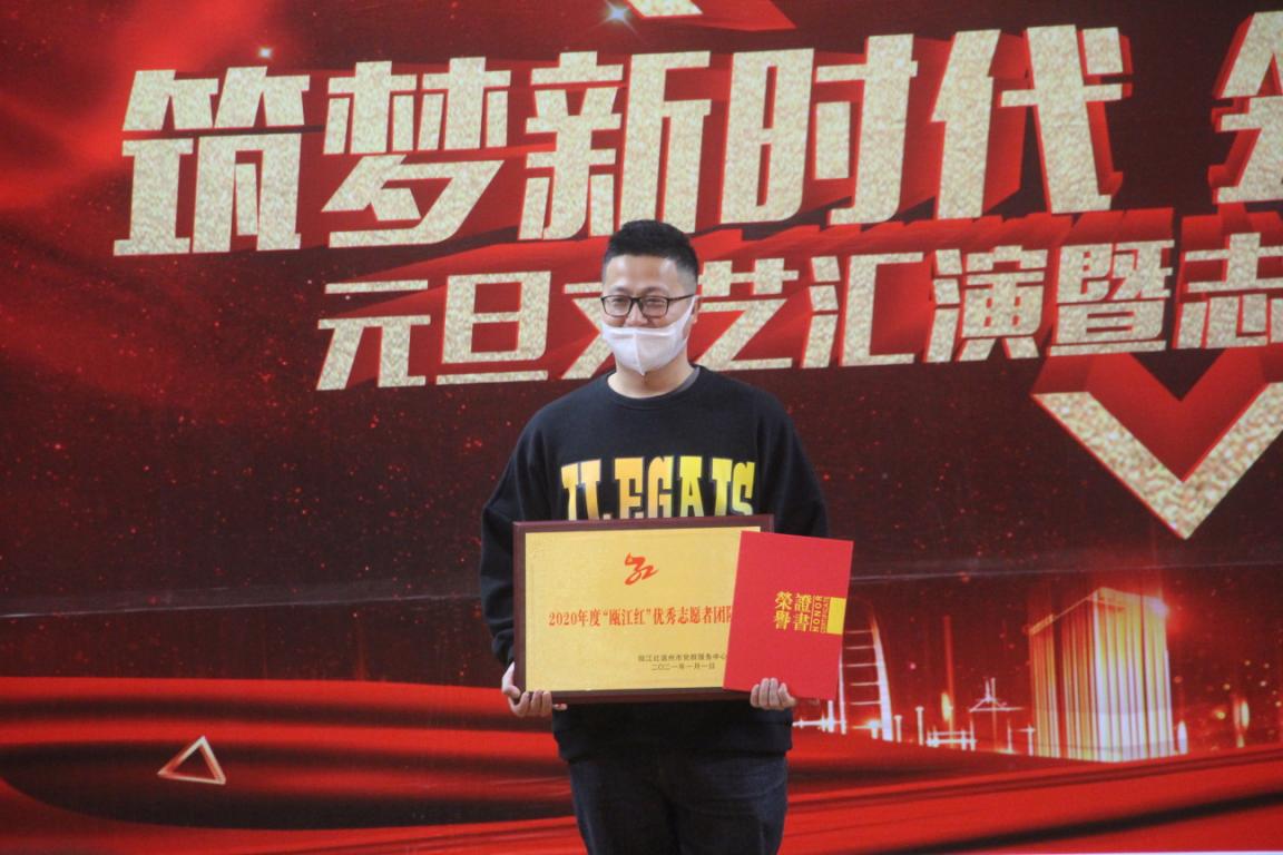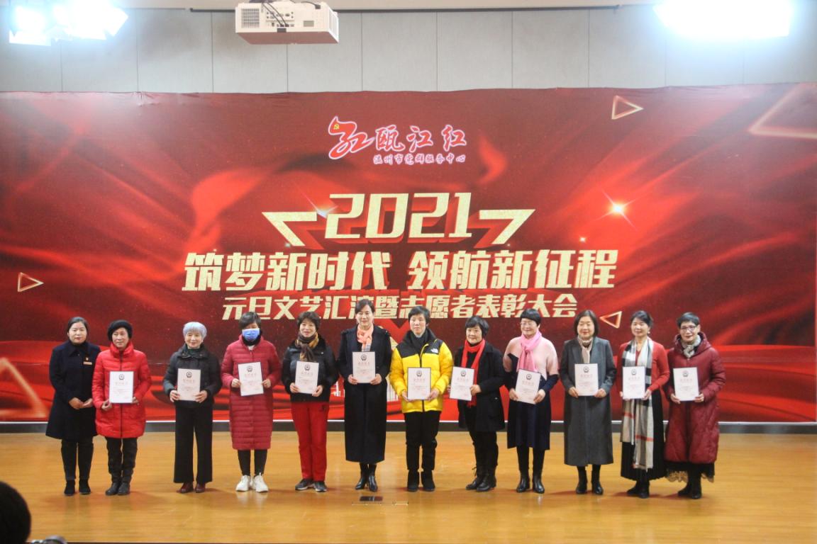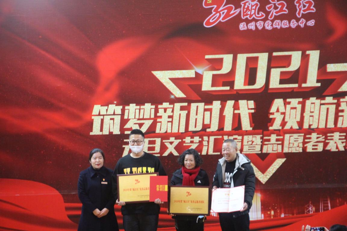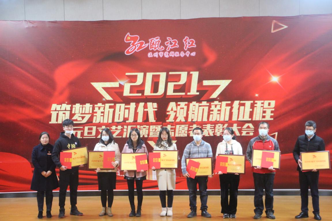 筑梦新时代,领航新征程。1月1日,“瓯江红”温州市党群服务中心组织开展元旦文艺汇演暨志愿者表彰大会,我院青年志愿者团队荣获优秀志愿团队奖,我院张文清同学获优秀志愿者称号。