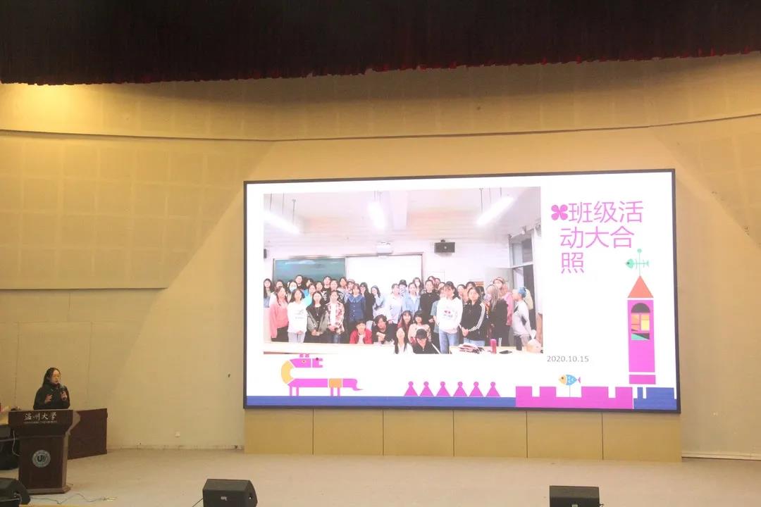 章园园老师作最后总结讲话,她指出进入大学后最重要的就是学会适应环境,而本次特色早晚自习的评比让她看到了同学们的班级凝聚力,这恰恰是学生融入大学生活的证明。特色早晚自习与班集体结合起来,将会树立良好的班风,创造一个团结协作的班集体,特别是在当下,学校注重于培养应用型人才,特色早晚自习的评比正是给出了一个展示的舞台,一个实践的机会。