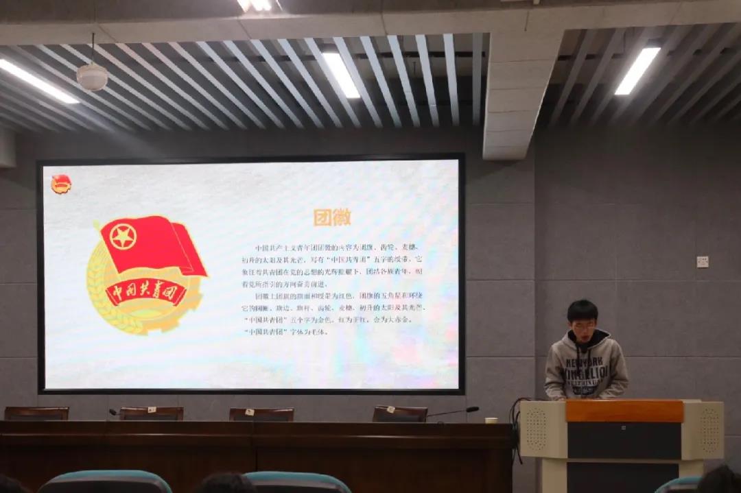 会议伊始,组织部负责人林靖凯为各班团支书介绍了共青团的性质与意义,其旨在加强团支书的政治思想观念,增强各班团支书对团组织的深刻认识。团支书们统一观看了《共青团公开课之“团的光辉历史”》,回顾共青团艰辛历程,了解在中国共产党的领导下,共青团团结带领一代又一代青年在不同历史时期用青春和热血书写壮丽的青春篇章。随后,主持人深入介绍了团徽、团旗、团歌以及规范使用,增强团支书对团相关知识的了解。