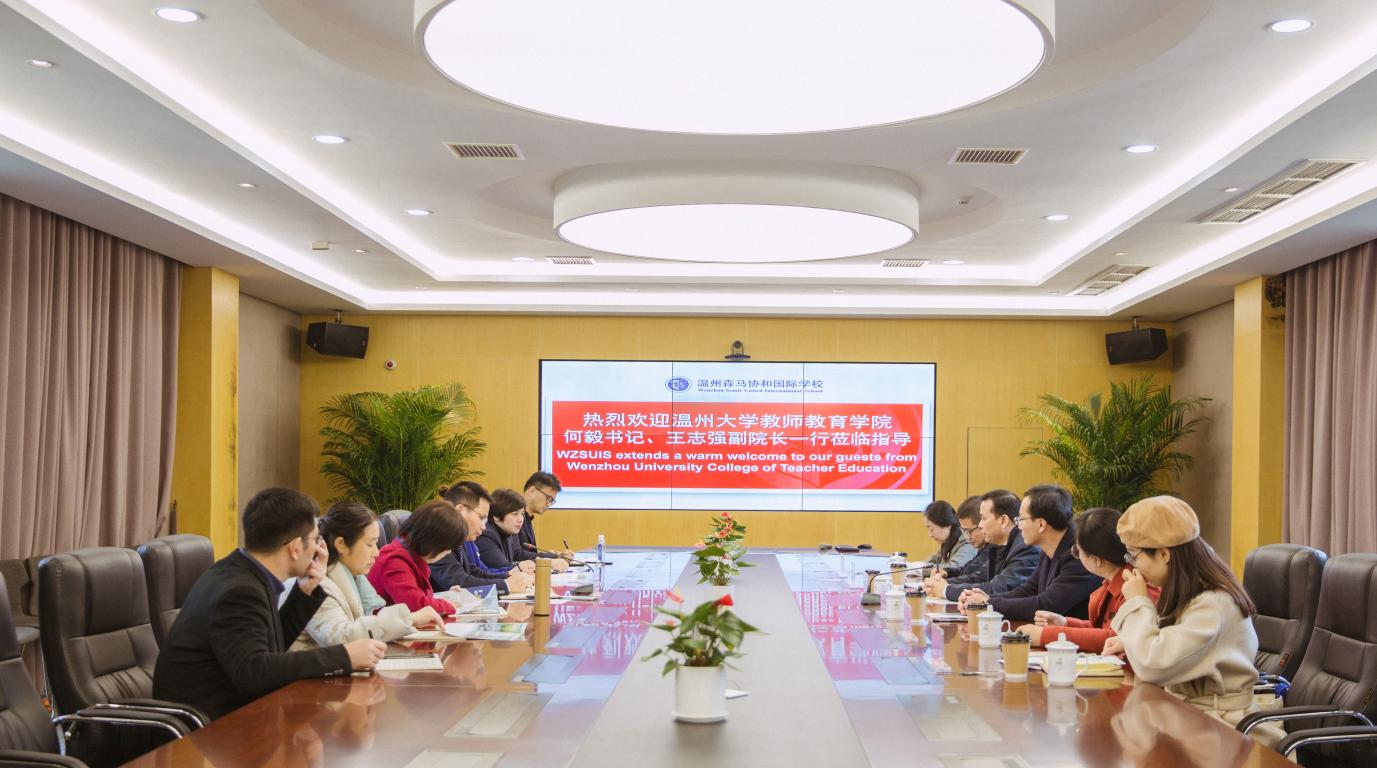森马协和国际学校校长黄海对我院教师一行的到来表示热烈欢迎,他介绍了温州森马协和国际学校的办学历程、办学理念、办学资源和国际化办学特色,提出期望能与学院达成多方面合作,发挥双方所长,实现共赢发展。