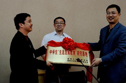 授牌仪式上, 张志宏副局长充分肯定了开展这项活动的意义,并希望温大p站视频 和柳市镇实验中学加强合作研究,尽快开发出有温州特色的中学生生涯发展教育校本课程,为温州学子健康成长成才提供帮助。