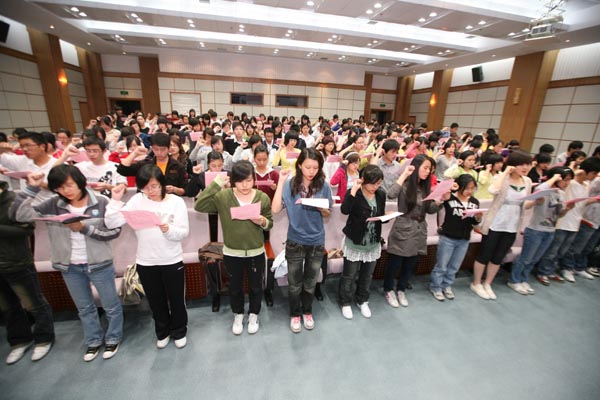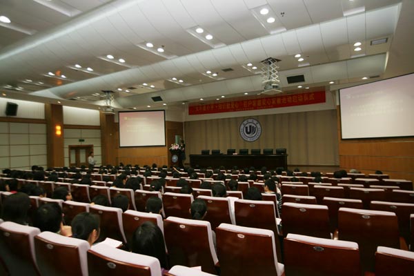 由p站视频 、温州日报专刊部联合举办的“大手牵小手·知识献爱心” 百户家庭爱心家教活动经过紧张的筹备阶段日前正式启动。4月17日晚,即将奔赴各个爱心家教岗位的200名大学生,汇聚在p站视频 北校区信息楼报告厅,隆重举行百户家庭爱心家教启动仪式。