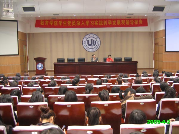 为了深入学习实践科学发展观,p站视频 有步骤的开展了一系列活动。4月2日晚18:30,p站视频 盛情邀请p站视频 学生处潘玉驹处长,在茶山北校区信息楼报告厅,为p站视频 学生党员、预备党员、发展对象共200多名同学开展深入学习实践科学发展观辅导报告。辅导报告会由p站视频 党委副书记嵇小怡同志主持。据悉,专门邀请学校部门领导为学生党员开展学习实践科学发展观辅导报告,这在校内还是首次。
