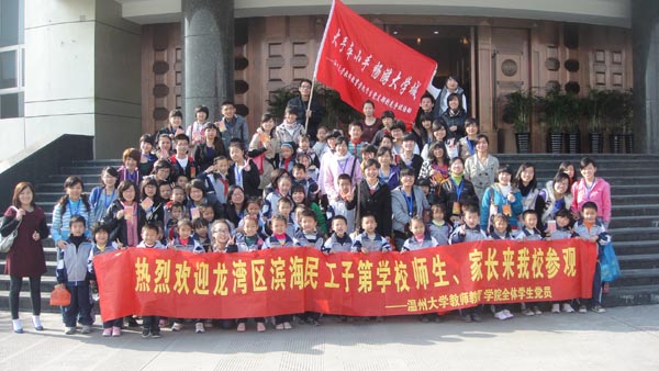 当天上午9时,民工子弟小学生们在该校吴爱菊校长以及部分家长的带领下,来到美丽的大学城。我院学生党员在辅导员