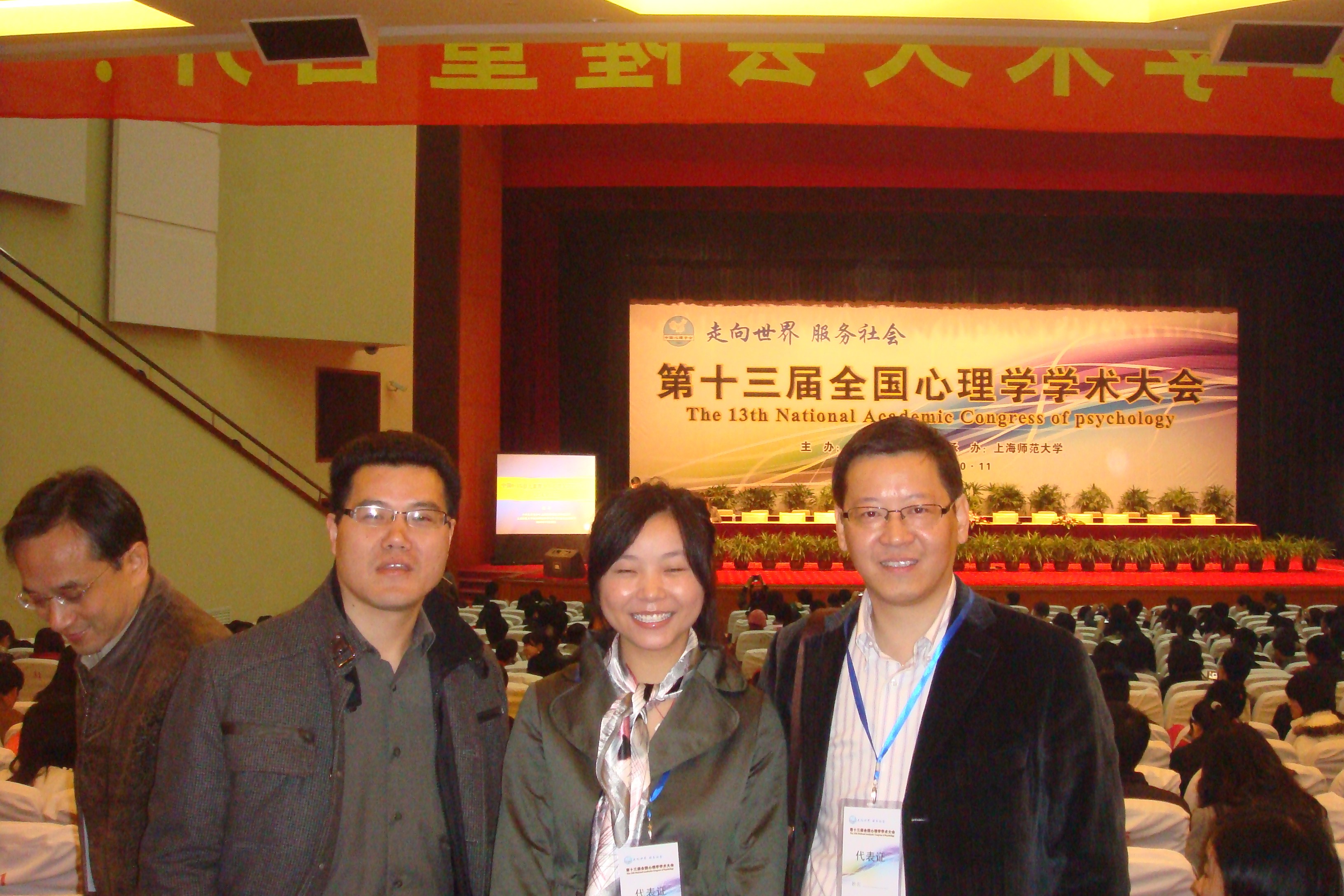 2010年11月19日至21日,由中国心理学会主办,上海师范大学承办的第十三届全国心理学学术大会在上海师范大学隆重召开,我院教师郑信军、徐速、胡瑜、郭文斌、卢佳与三位心理学方向的硕士研究生参加此次大会。