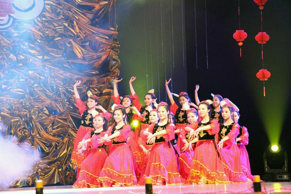 演出开始,首先给大家带来的视听盛宴是我院荣获第二届浙江省大学生经典诗文诵读比赛金奖的《我有祖国,我有母语》大型朗诵节目,深情展现学子对祖国挚爱的主题、优美的朗诵和华丽的伴舞立即调动了全场气氛。而接下来的节目更是精彩纷呈:具有维吾尔族特色的群舞《旋旋旋》让人不禁陶醉于其中;歌曲连唱激情洋溢活力澎湃;充满童真乐趣的儿童剧《小熊拔牙》让人忍俊不禁;而具有时尚气息的走秀《动感新秀》也一样令人击掌。还有古筝书法表演《书风弦音》,是幽雅的古筝声中,获得规范汉字书写大赛全国一等奖的瞿秋露同学,挥笔写下的“学高为师身正为范”八个大字,让大家再次体会了一名师范生的行为准则。