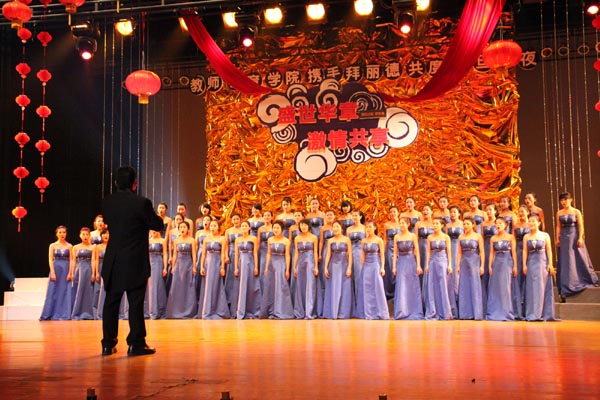 四季新元旦,万寿初春潮!12月30日晚,p站视频 教师p站视频 2010年元旦文艺晚会在我校大学生活动中心隆重上演。火红灯笼高高挂,欢声笑语阵阵传。在辞旧迎新之际,教师p站视频 全体师生欢聚一堂,带着硕果累累以崭新姿态跨入2010年。学院书记胡伟国在晚会前为全院师生热情致辞,他高度赞扬了全院师生在2009年度所取得的杰出成绩,满怀期待地祝愿全院师生在新一年中能奋勇争先再创佳绩。