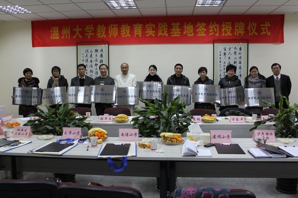 与温州市广场路小学、建设小学、蒲鞋市小学、瓦市小学、城南小学、瓯海实验小学等10所温州市知名小学举行教师教育实践基地签约仪式,副校长叶世祥、瓯海区教育局政工科副科长张平凡以及教师教育基地和教务处、教师p站视频
