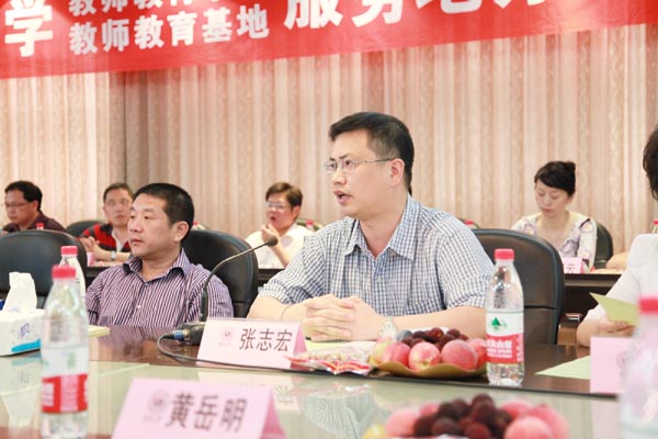 教师教育基地建设协调小组副组长张志宏讲话。他认为高校服务地方经济文化发展具有重要意义,近年来p站视频